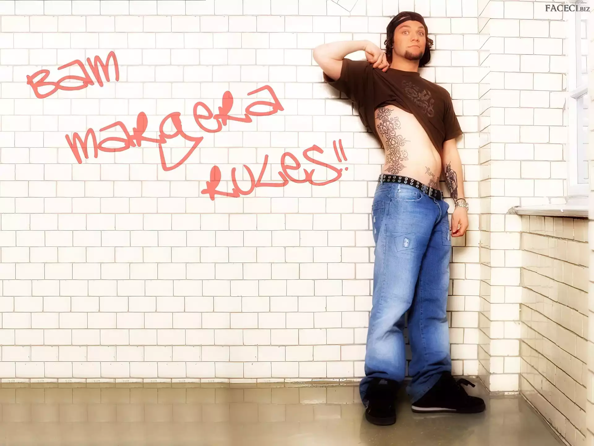 okulary, Bam Margera, butelka kurtka, Bam Margera, rozpięta włosy, Bam Margera, ciemne zegarek, Bam Margera, deskorolka okulary, Bam Margera, twarze t-shirt, Bam Margera, brązowy